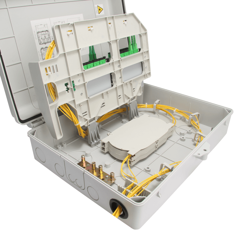 – Bi-layer structure of the box: bottom for splicing and upper layer for splitting and distribution
